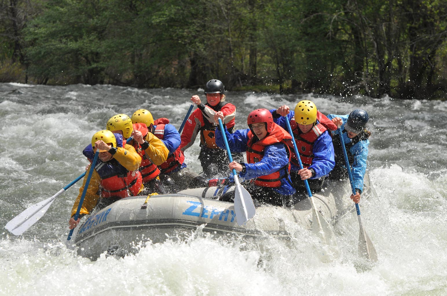 In my free time, I enjoy watching movies, playing games and going outside. My favorite book is The Lord of the Rings, and I enjoy watching Jackson's renditions of Tolkien's work. Some activities that I enjoy outside include hiking, mountain biking, rafting, skiing and tennis. Shown in the picture below is me (in the red helmet) white-water rafting on the Merced River just outside the Yosemite Valley.